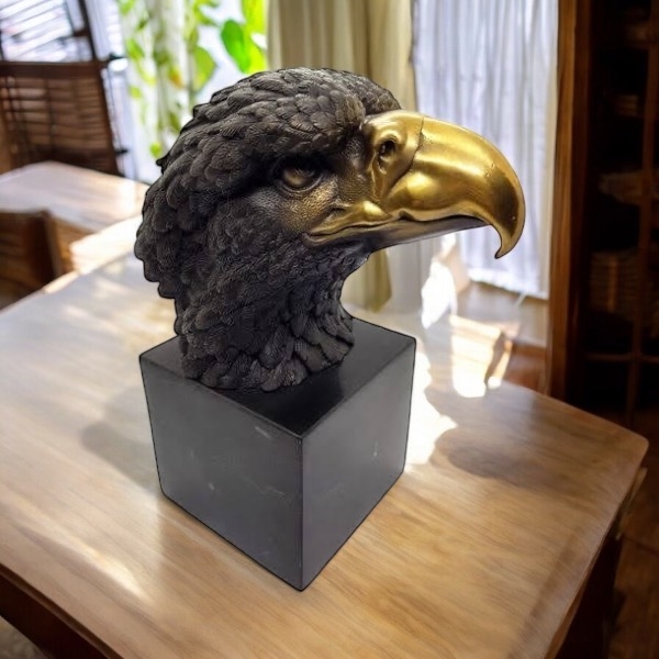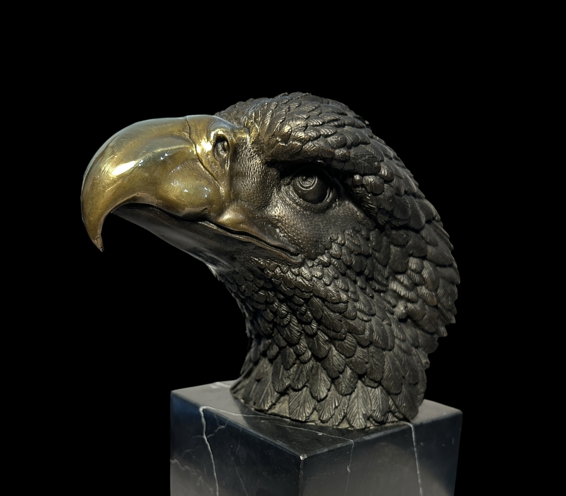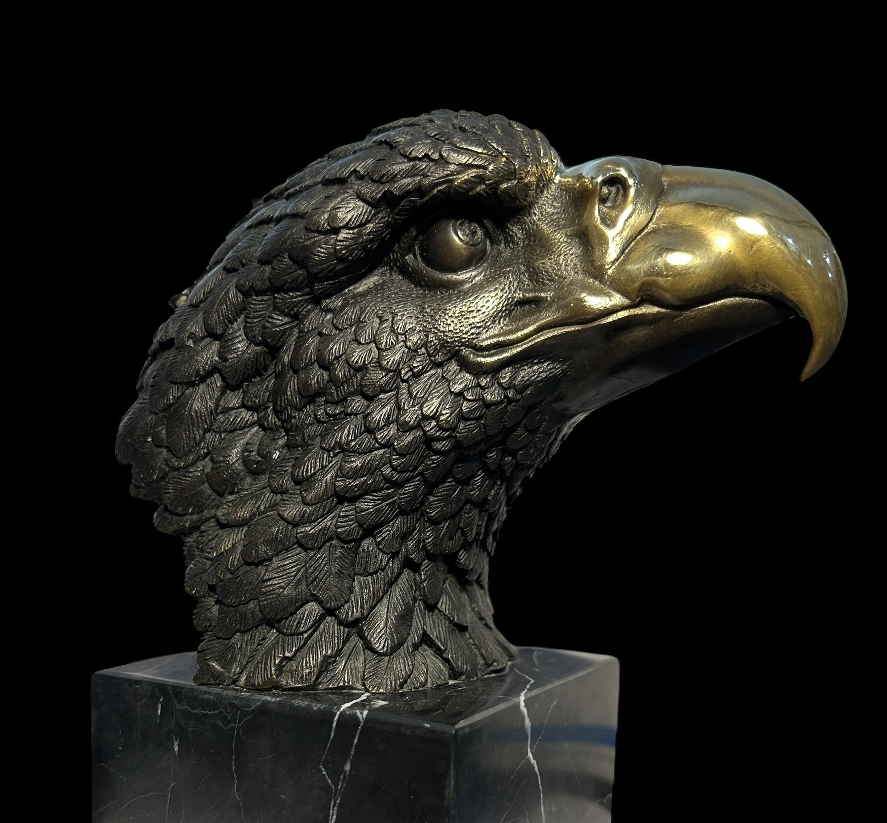 ✨ Đầu đại bàng bằng đồng nguyên khối, mỏ mạ vàng hầm, ánh mắt sắc lạnh, từng lớp lông được giải quyết công –mạnh mạnh, tinh tế, uy béo.