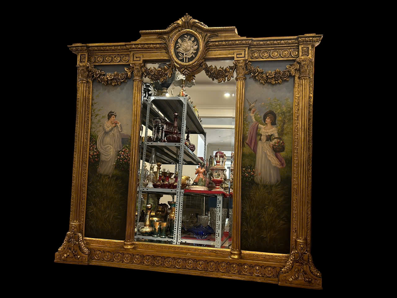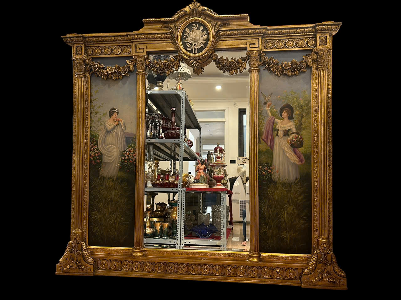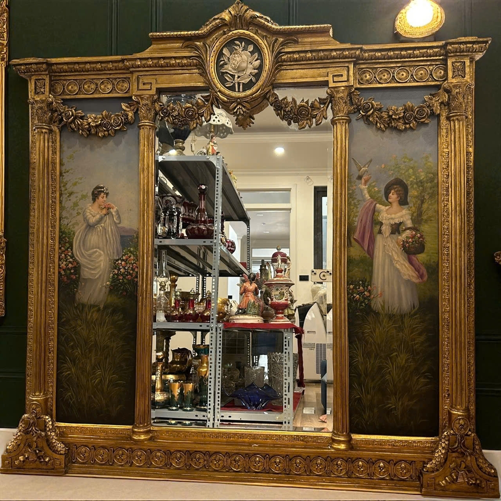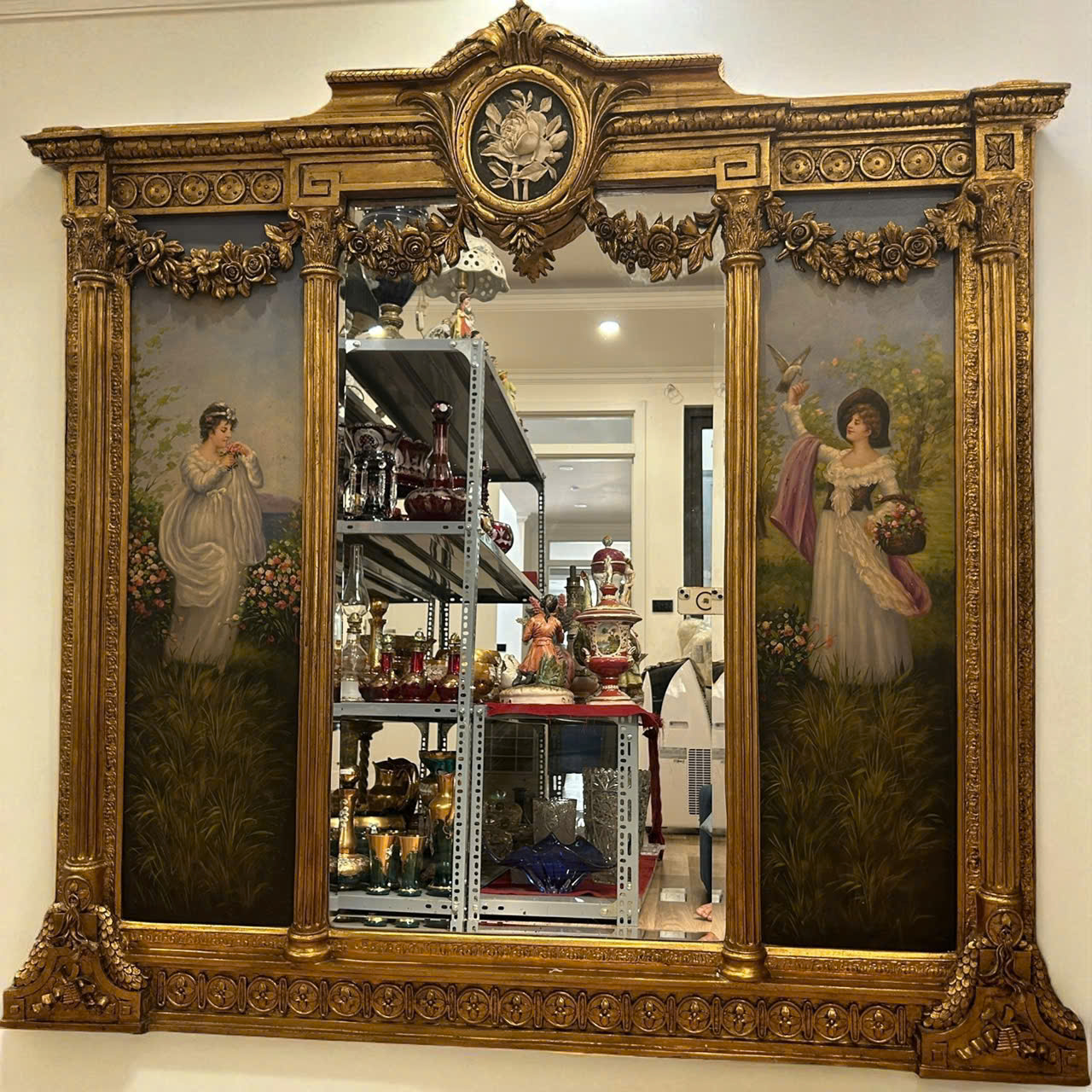 Gương gỗ quý tộc Pháp tranh vẽ thiếu nữ châu Âu 150x148 cm