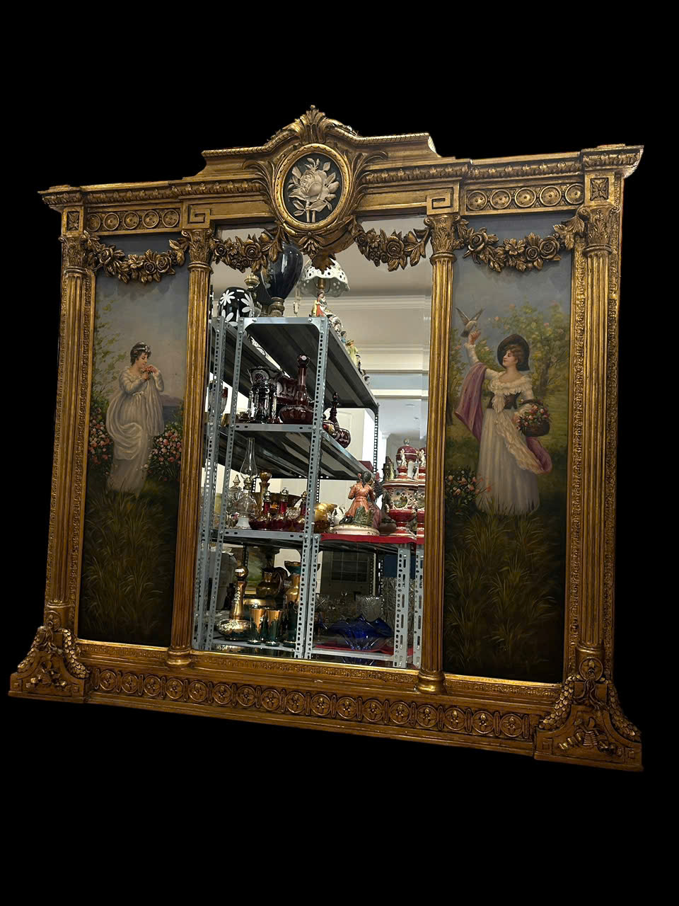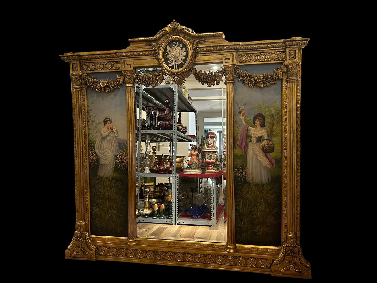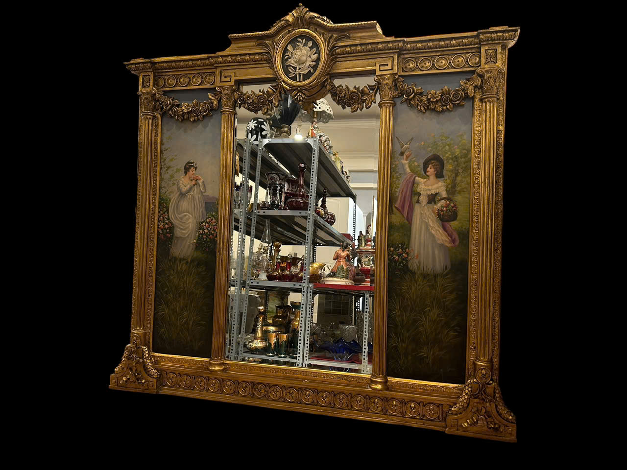 Gương gỗ quý tộc Pháp tranh vẽ thiếu nữ châu Âu 150x148 cm