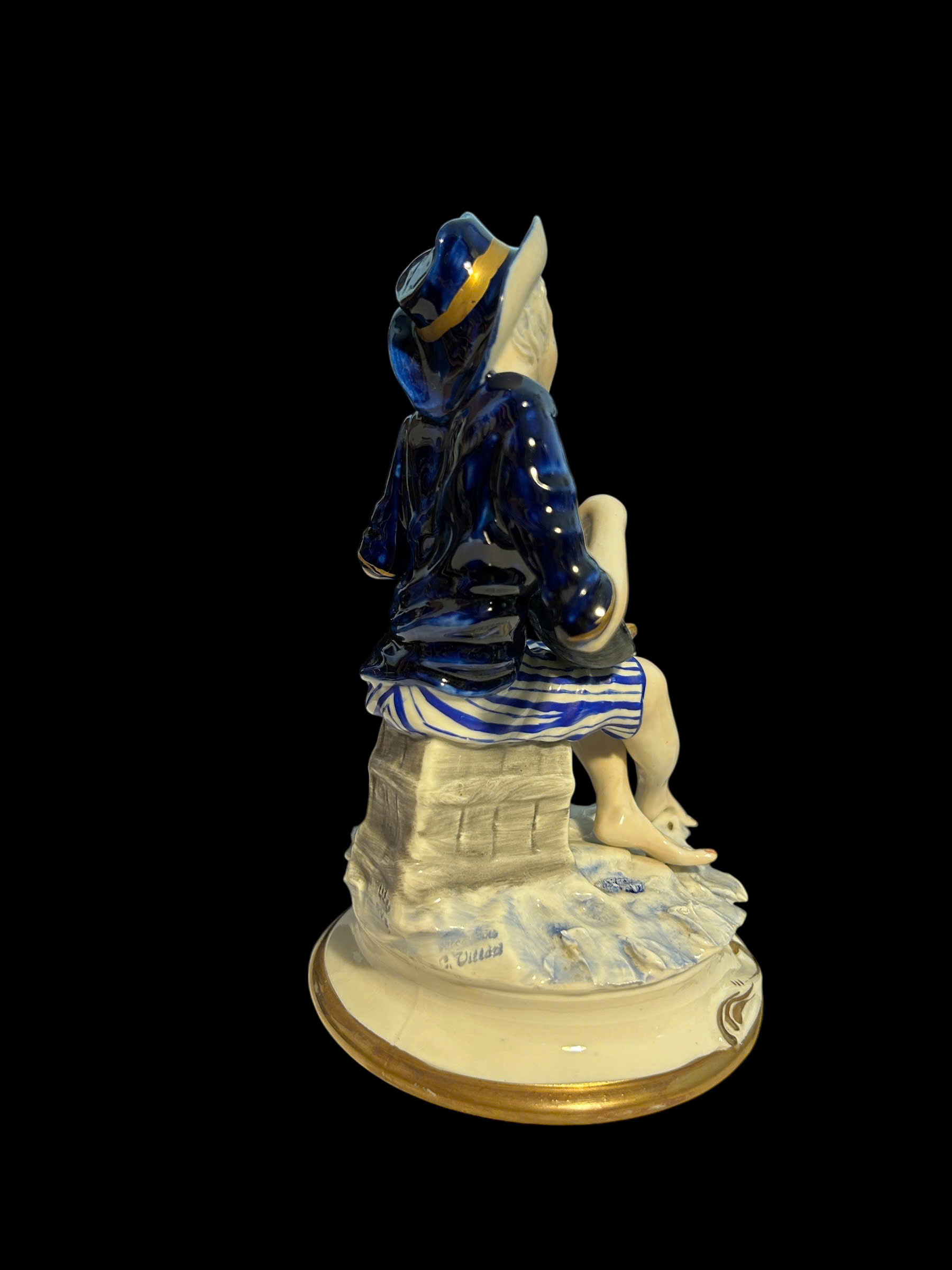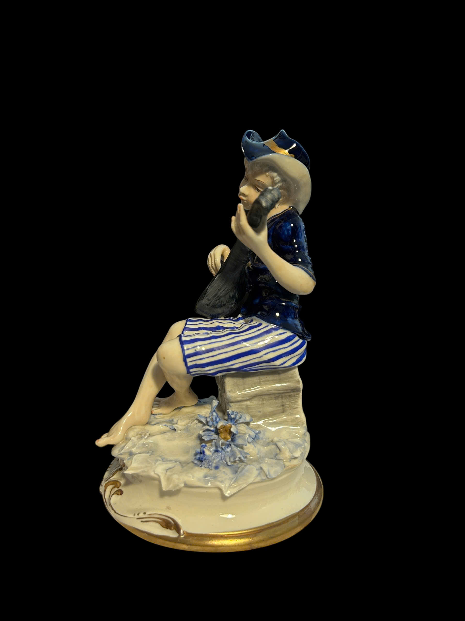 • Có thể đến từ lò sứ Đức (Sachsen, Meissen) hoặc Pháp (Limoges) – thời kỳ tái sinh nghệ thuật trẻ thơ quý tộc. Chất men, phong cách tạo hình và nước men xanh coban phủ bóng đặc trưng châu Âu.