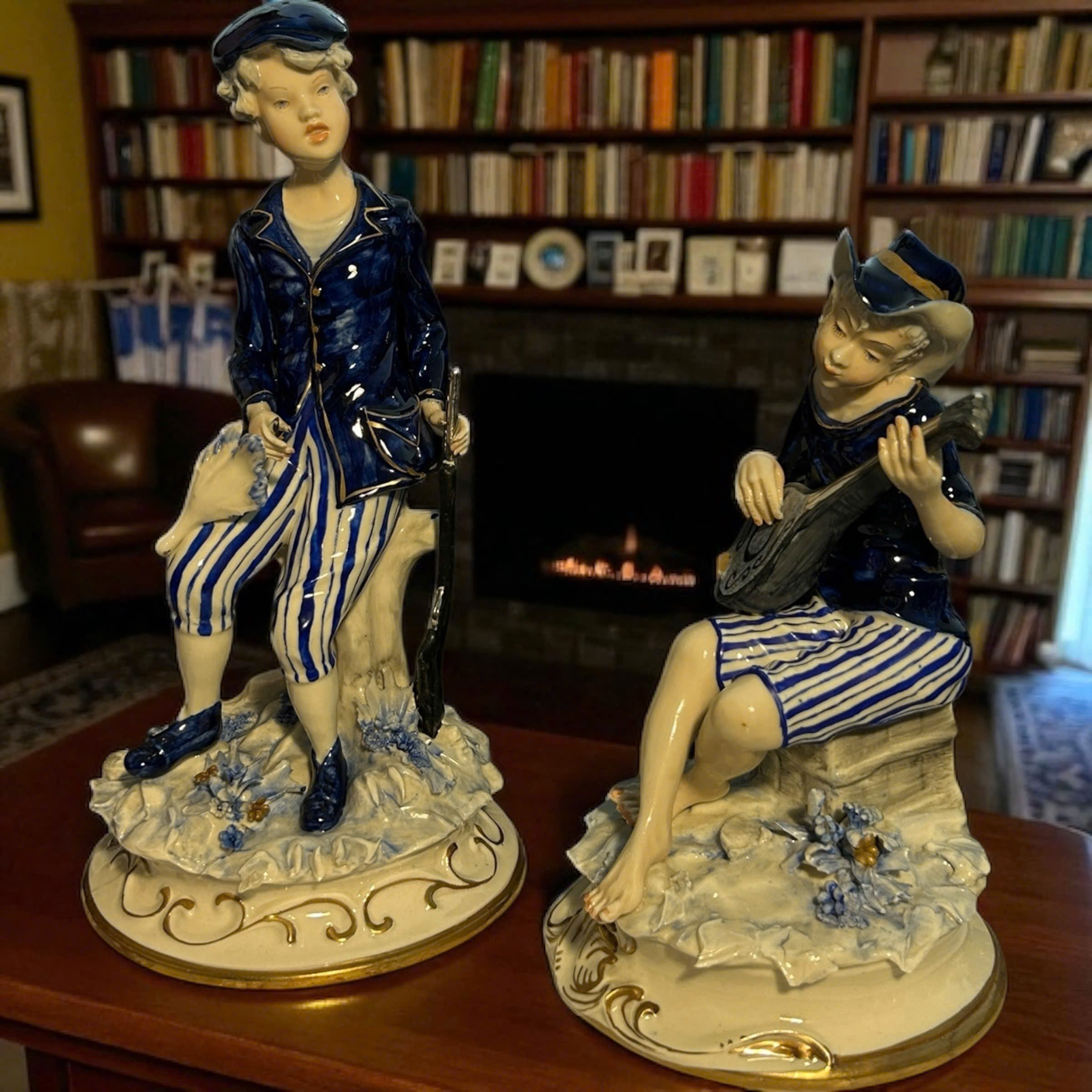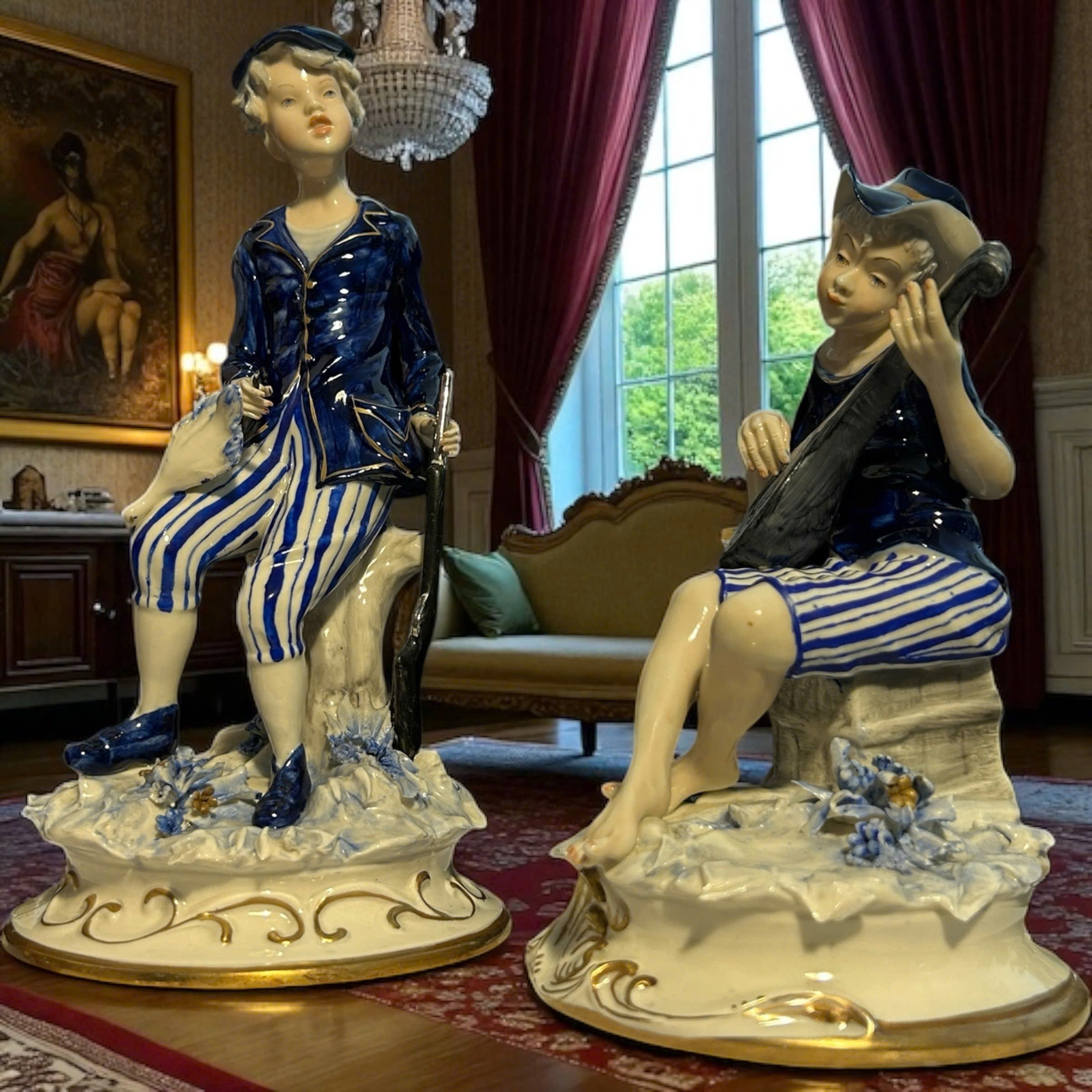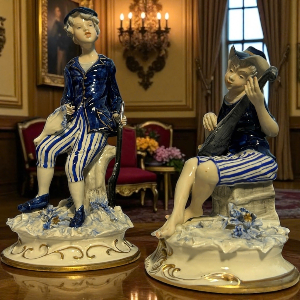 Chúng không đứng yên. Chúng thì thầm một câu chuyện – về tình yêu, về âm nhạc, về niềm vui chiến thắng và vẻ đẹp trong cuộc sống. Hai cậu bé, hai chàng trai tí hon bước ra từ thế giới cổ tích gốm sứ – tinh nghịch, quý phái, sống động như thở bằng men.